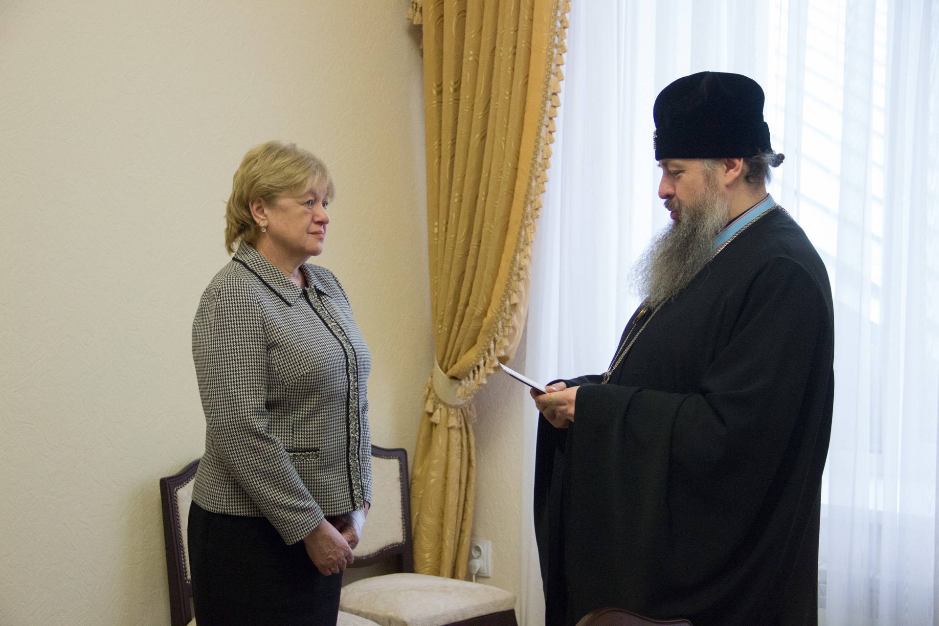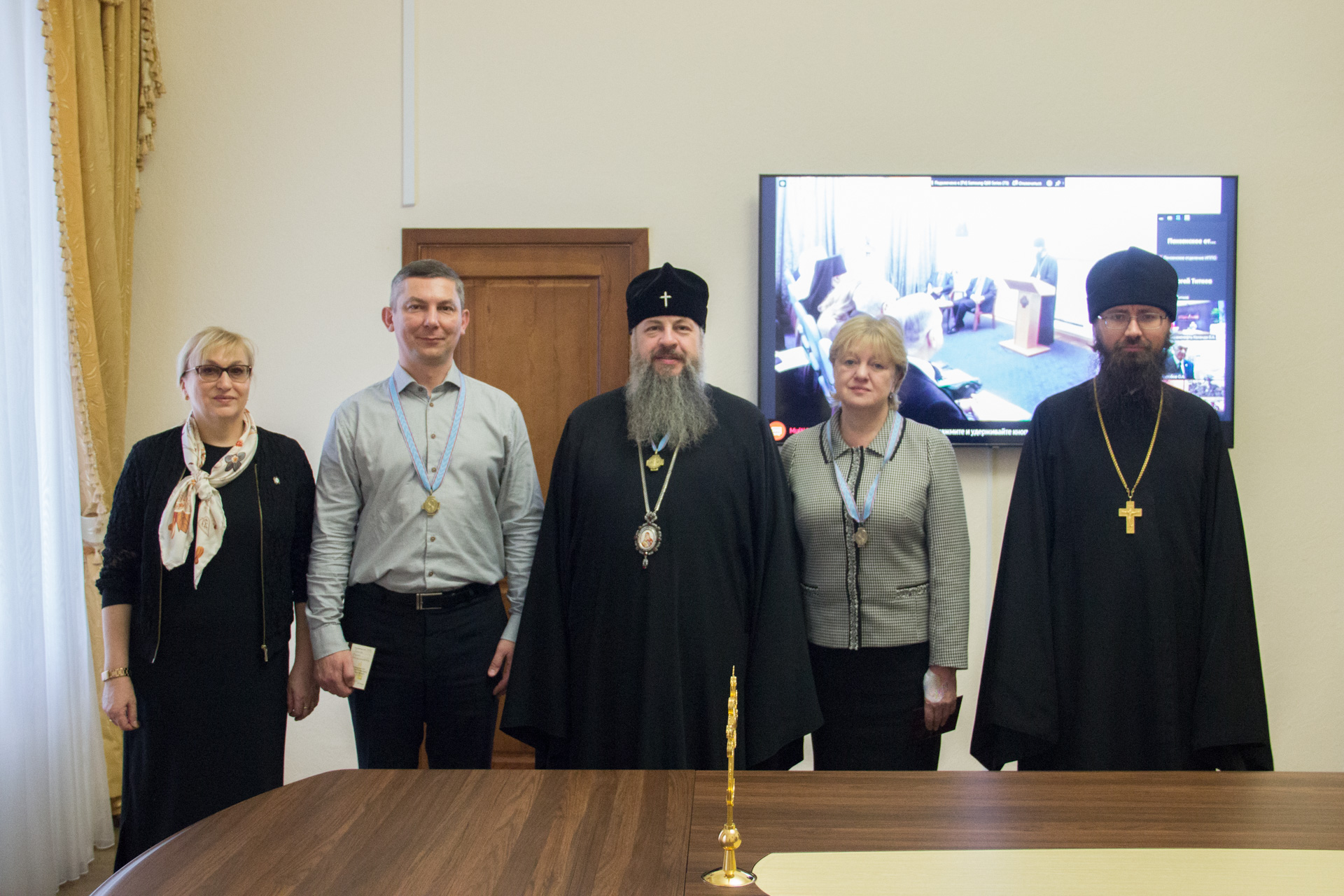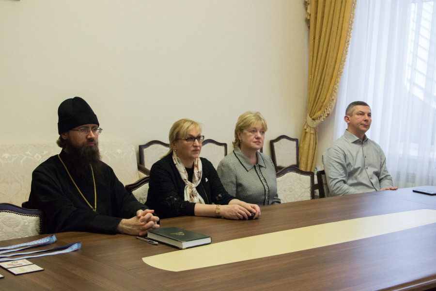 В это время в зале Совета Пензенской епархии председатель Попечительского совета митрополит Пензенский и Нижнеломовский Серафим (Домнин) вручил знаки и удостоверения членов Императорского Православного Палестинского Общества директору Пензенской областной библиотеки им. М.Ю. Лермонтова Марине Николаевне Осиповой и доценту кафедры Библиистики и богословия Пензенской духовной семинарии Андрею Владиславовичу Горайко.