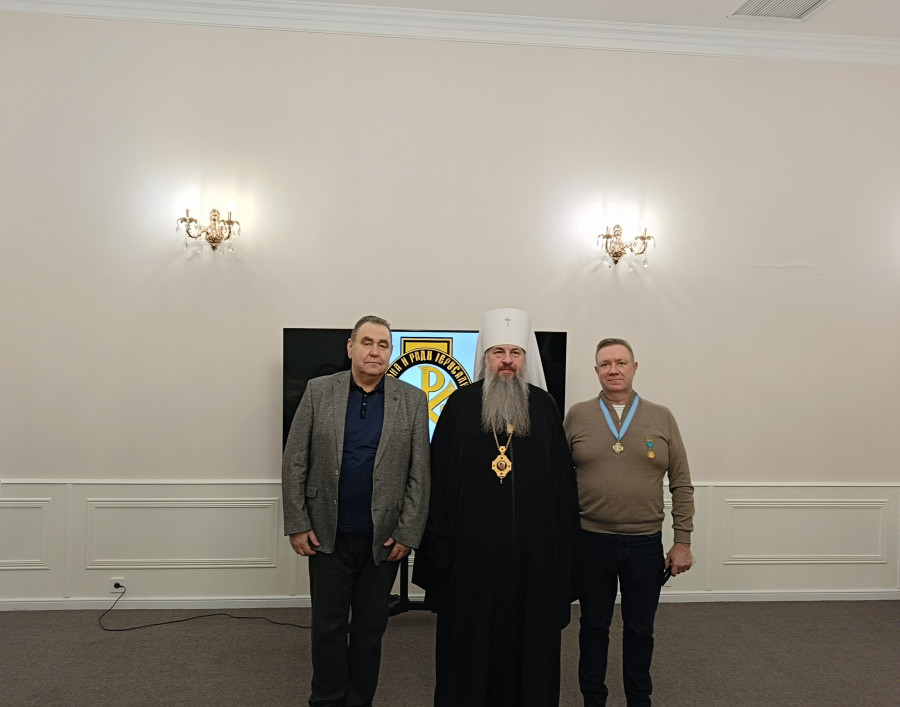 По поручению председателя ИППО Сергея Вадимовича Степашина митрополит Серафим и Александр Иванович Бирюков вручили Алексею Викторовичу Полосину почетный знак ИППО памяти Василия Николаевича Хитрово.